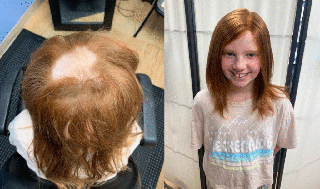 As part of our commitment to supporting young clients and their families, we proudly donate one custom-made wig each month to a child or teen—completely free of charge. Additionally, we work with trusted organizations like Wigs for Kids and Just Live Life Kids to provide further no-cost options.